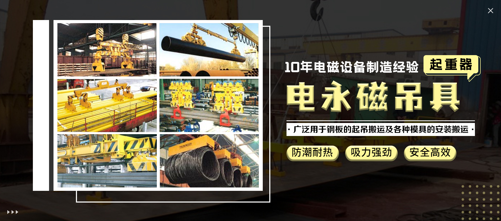 电永磁吸盘是起重电永磁是结合电磁、永磁各有特性的新型起重设备。利用不同永磁材料的不同特性设计磁路,通过电控系统对内部磁路进行充磁、退磁控制,达到吸料和放料吊运各种钢材。电永磁吸盘与传统电磁铁具有更好的性价比。电永磁吸盘只是在充磁和消磁过程的1-2秒使用电能,在工作中不需要电能,只靠永磁吸力吸住物料。它不需传统电磁铁庞大的电控系统(包括备用电瓶),能耗只有传统吸盘的5%从而降低了电能,为用户节约了成本带来经济效益。