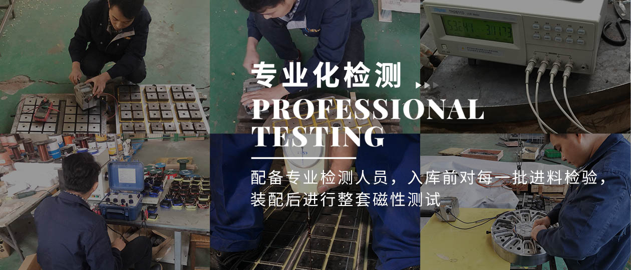 电永磁的磁力来源于其内部组成磁回路的两张高能磁性材料:钕铁硼、铝镍钴,产生最大为18kg/cm2的吸力.使之强劲持久;电永磁通过瞬间电脉冲激活产生持久强大的磁力,断电不失磁,而退磁只需提供反向脉冲即可,这样电永磁吸盘才能安全可靠;在在充、退磁的瞬间消耗电能,工作中不消耗电能,对比机械、液压、气缸等系统,无易损件、无需液压压油、压缩空气等,无特定维护,只需保持表面洁净,对工厂来说更节能环保。