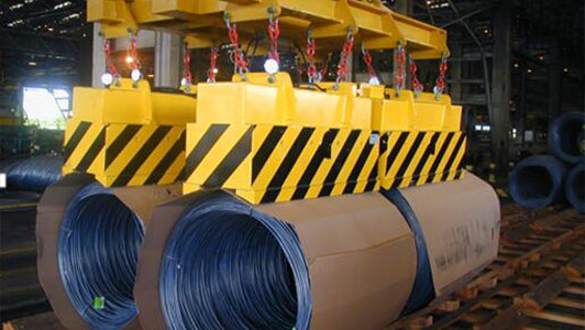 产品用途:适合于不同直径的盘圆,电磁铁的选择取决于盘圆的长度,如电磁铁足够长,则一次可沿长度方向吊运几卷盘圆。