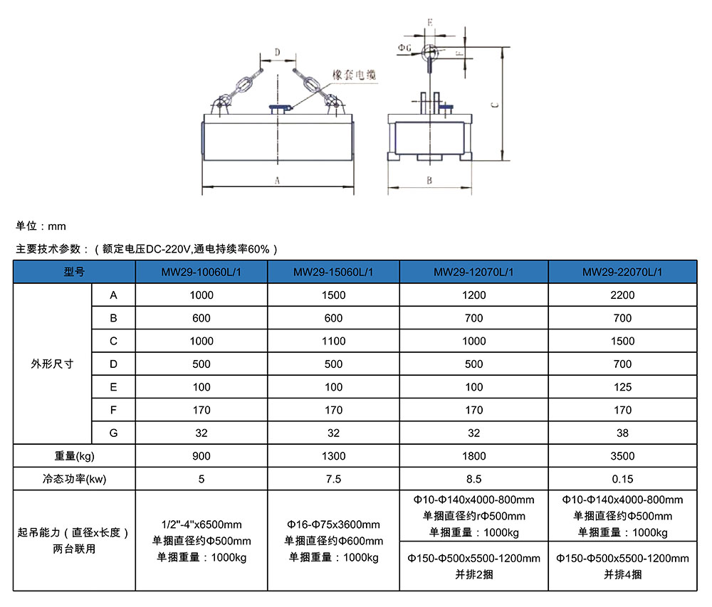 1.磁极结构为扁平状,适合搬运各种外径、长度、根数、捆数的捆扎钢管。