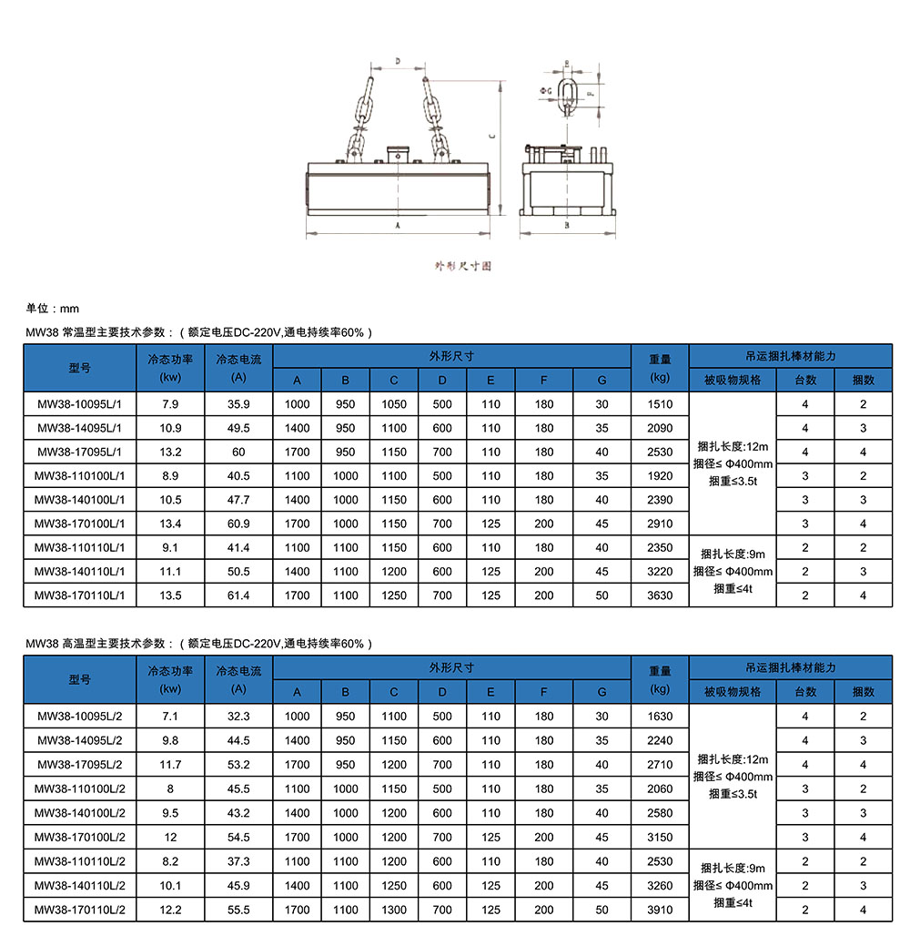 MW38 吊捆扎螺纹钢(捆扎圆钢)起重电磁铁