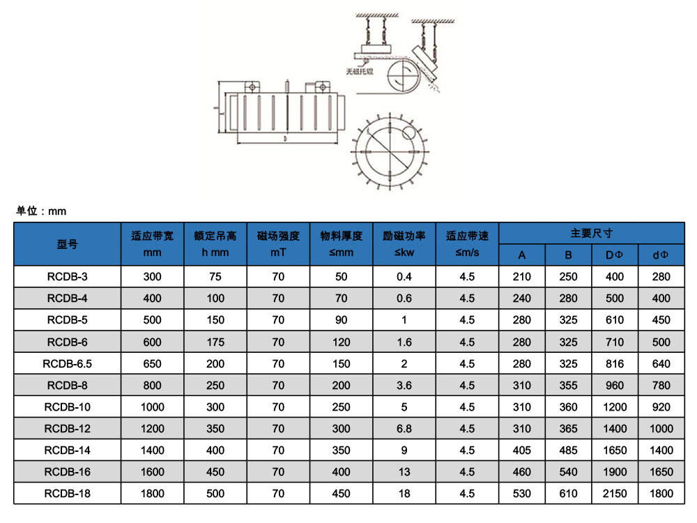 产品用途:用于清除粉状或块状非磁性物料中杂铁的除铁装置。